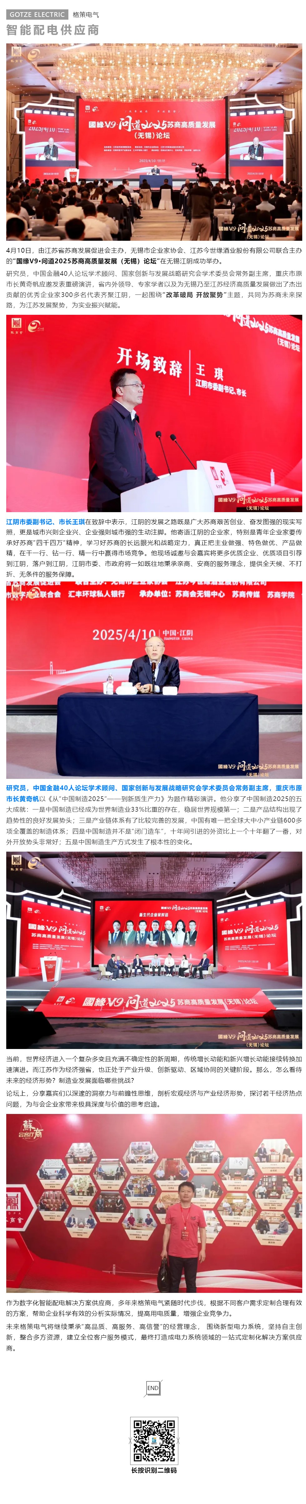 格策電氣受邀參加“國緣V9·問(wèn)道2025蘇商高質(zhì)量發(fā)展(無(wú)錫)論壇”,共探蘇商未來(lái)